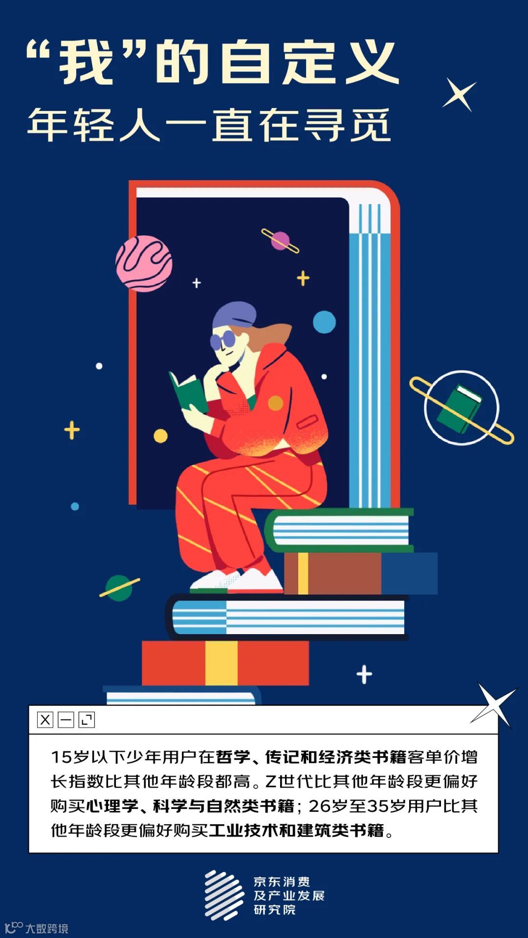 这个年龄段的读者群,拥有较高学历和稳定的家庭,他们购书的类目最分散,同时也在生鲜、食品、日百等品类消费占比较高,是成熟的互联网零售用户,习惯于在线上进行全品类消费,同时也是消费升级、享受生活、推动市场提质扩容的主力人群。