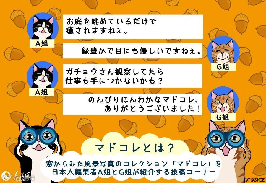 ウチのオフィスの窓からは、こんな風景またはこんなモノが見えると自慢していただく「マドコレ(窓から見た風景コレクション)」コーナー。どこまでも続く青い空や遠くに見える山々といった自然の風景から、オフィス街に建ち並ぶ高層ビルや幹線道路を走る車、庶民の暮らしが垣間見えるローカルな街並み、はたまた移動中の車窓からの眺めなどなど、高さや場所も異なれば、その窓から眺める風景も千差万別。中には仕事の意欲をアップさせてくれる元気の出る光景もあれば、疲れを癒してくれるほっこりした風景も。そんな皆さまからお寄せいただいたマドコレの数々を、毎週火曜日に、人民網日本人編集者のA姐とG姐がコメントしながら、のんびり紹介していきます。