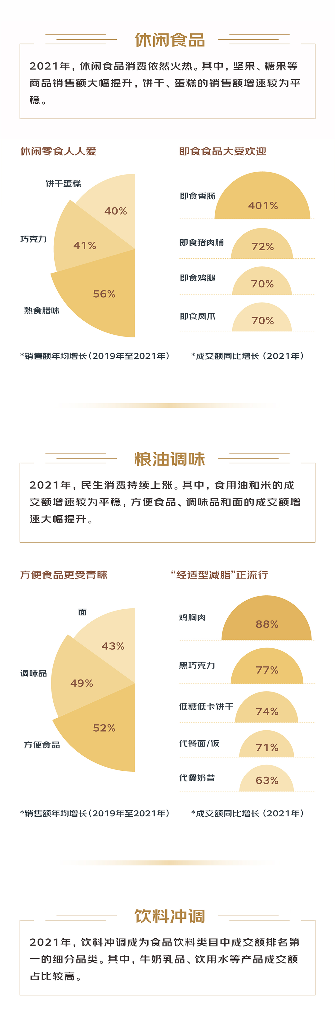 从生活必需的粮油调味类食品,到改善生活品质的休闲零食、饮料冲调类食品,丰富多元的食品饮料产品正在全面接管消费者的“吃生活”。与此同时,消费者在饮食消费上也更加注重对品质和健康的追求。