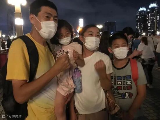 居住在日本的中国家庭前往“梦之大桥”观看圣火台,并为中国队加油。李沐航摄