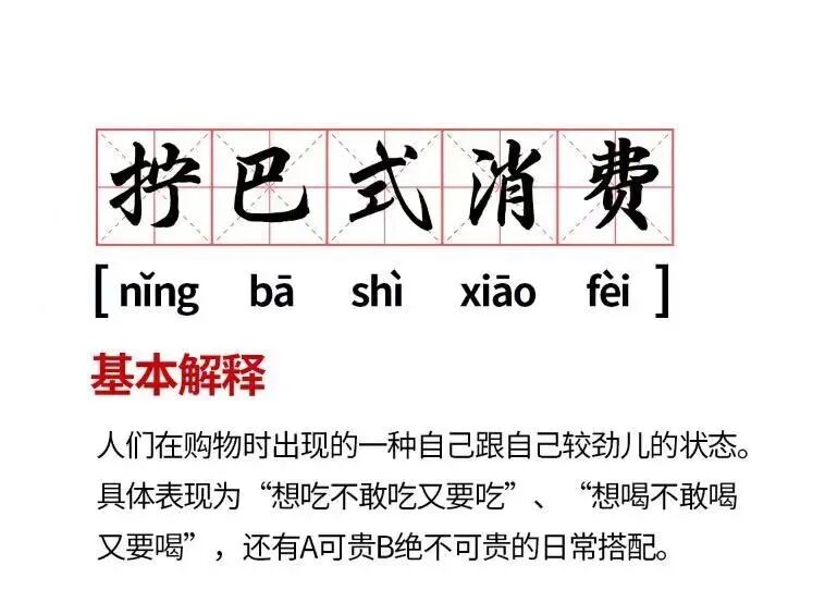 “拧巴式消费”是一种新型的消费特征,具体表现为“想吃不敢吃又要吃”、“想喝不敢喝又要喝”,以及某种商品消费是高阶水平但同时配套商品经济实惠。