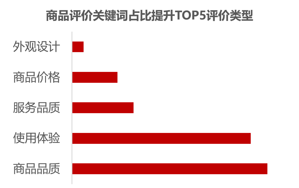 京东大数据显示,从各类商品评价关键词的占比变化来看,提升较多的评价类型是商品品质、使用体验和服务品质。同时,媒体公开调研的数据显示,消费者购物时“最在意的因素”是商品品质与平台(商家)的可靠性,尤其在3C、美妆等领域。