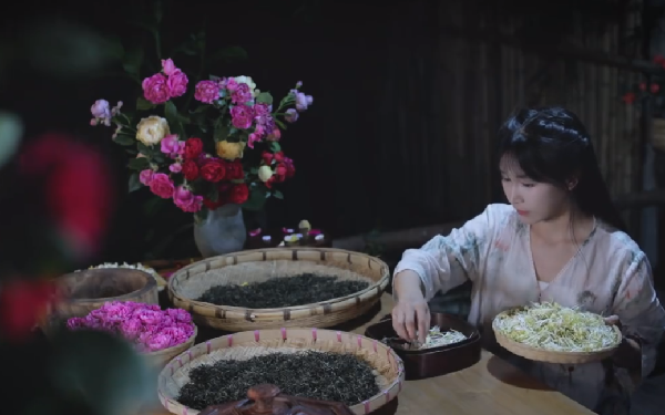 動画のどのシーンも、爽やかさを感じさせるだけでなく、趣があり、庭に咲くカラフルなバラやアジサイの花もまるで絵のような美しさ。また、家族や友人たちに茶を振る舞い、一緒に味わう様子からは、昔ながらの雅さを感じることができる。