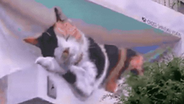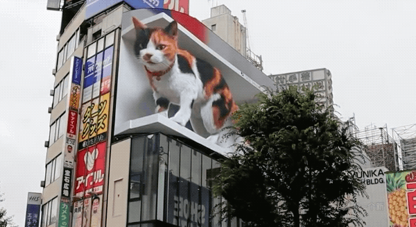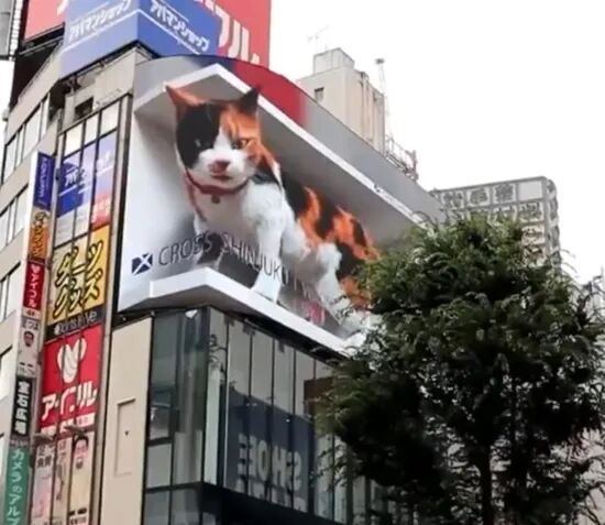 7月12日,在东京新宿的JR新宿车站东口广场对面的一幢大楼上,一只巨大的三色猫映入人们的眼帘,吸引了不少行人驻足围观。