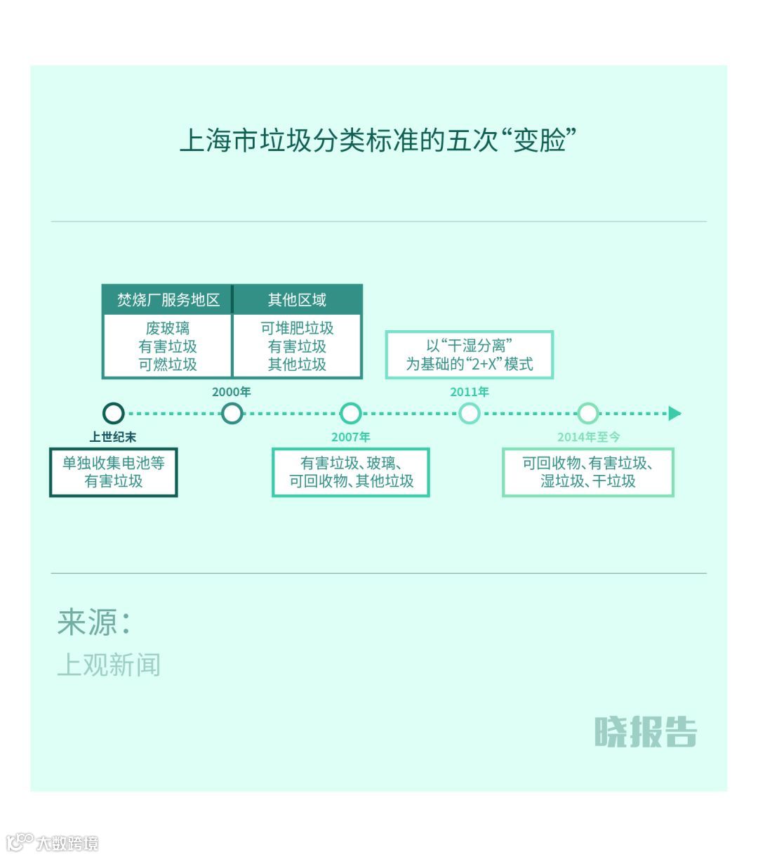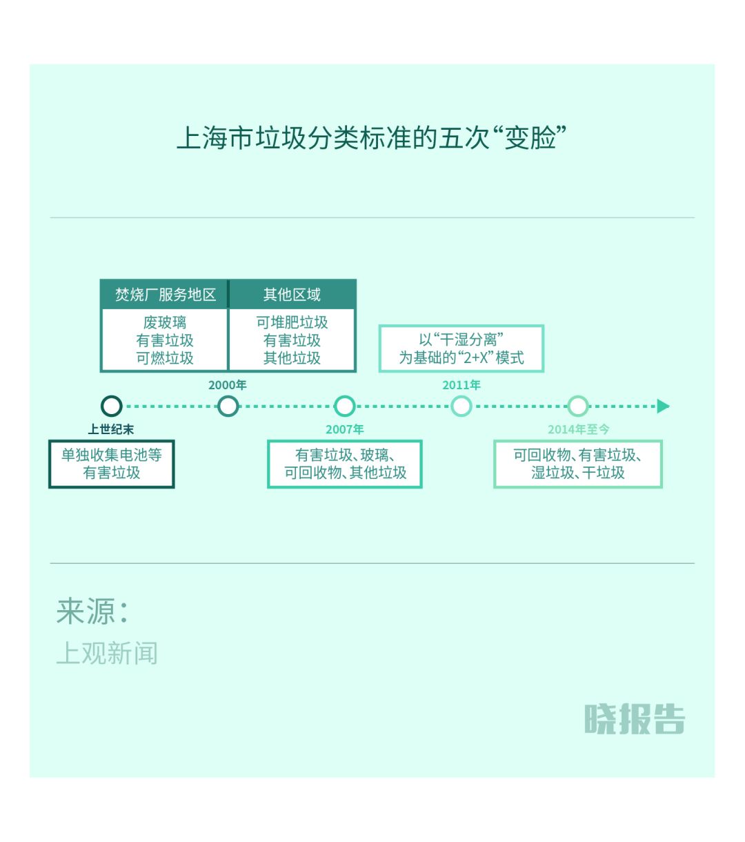 只不过,虽然试点的小红旗插上了,但是垃圾分类的标准老在变。比如上海,近20年间就变了5次垃圾分类标准。