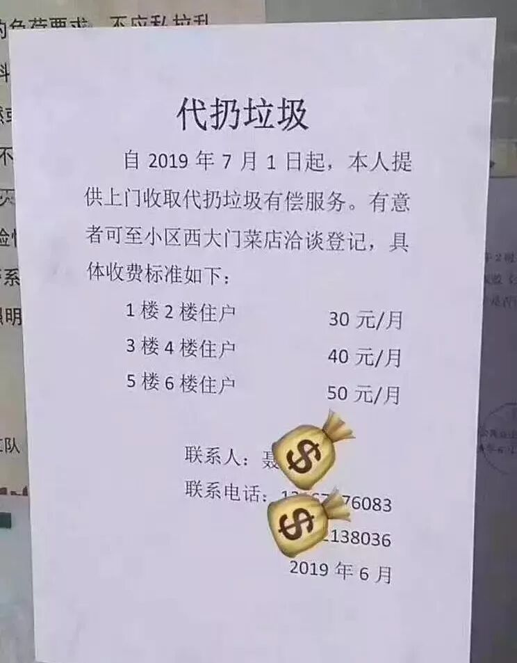 小巴已经在网上看到过小广告了,根据这一收费标准,勤快的垃圾代收小哥,月收入可以达到一万元以上。