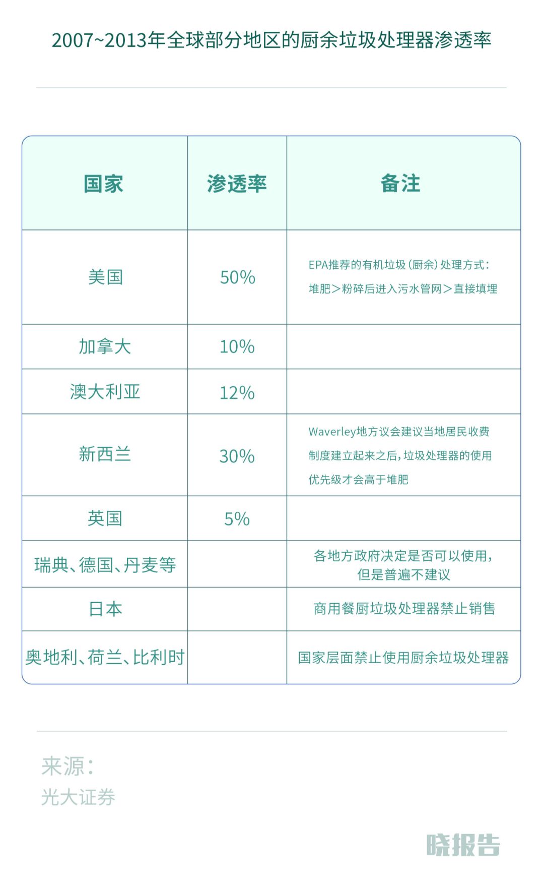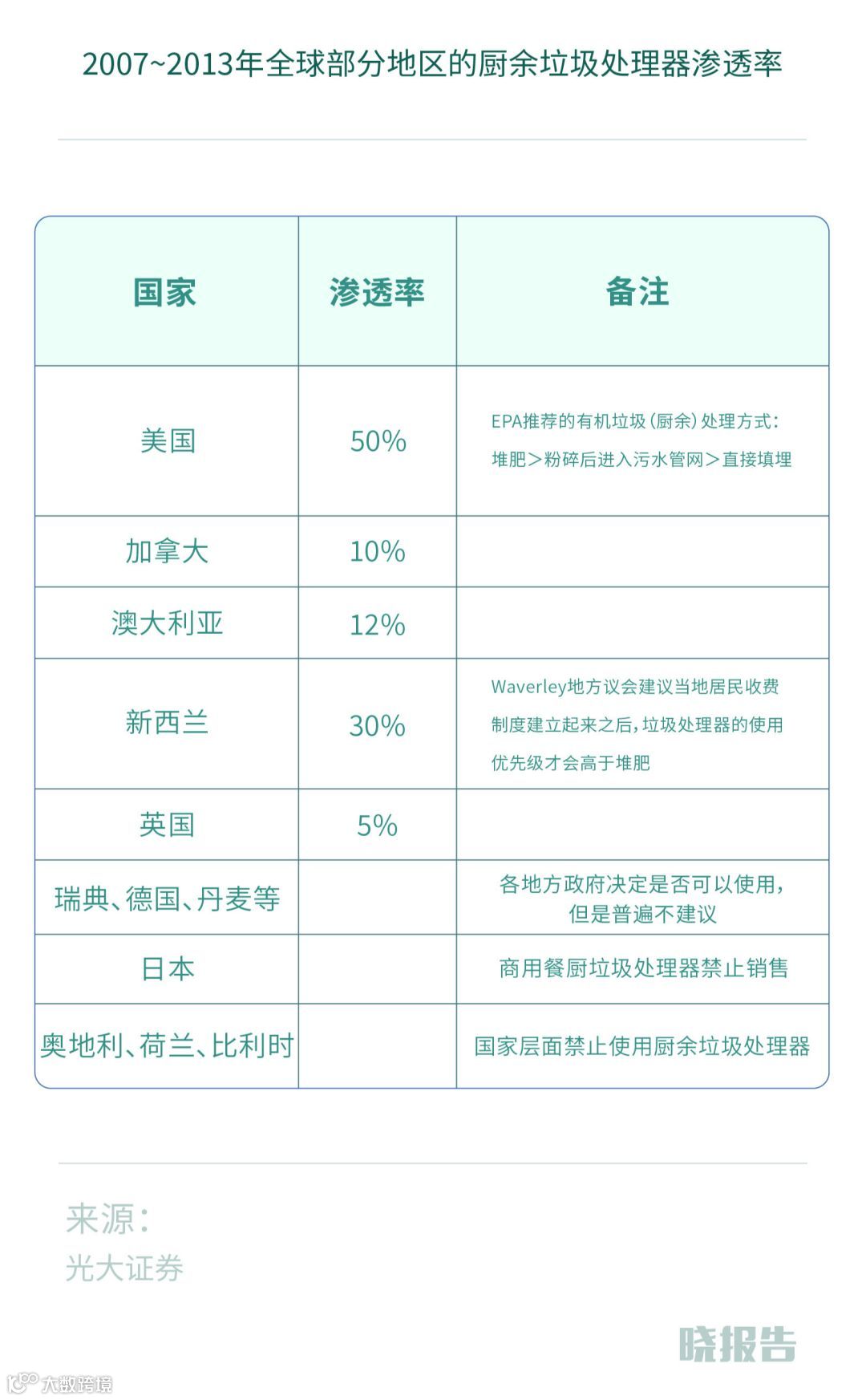 但在美国和新西兰,它们就觉得自己的排水系统能处理好这个问题,因此厨余垃圾处理器的家庭渗透率还挺高。