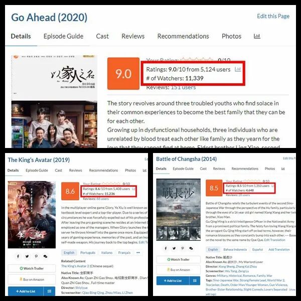 「My Drama List」に入っている人気ドラマを見ると、「陳情令」や「琅琊榜(琅琊榜 ~麒麟の才子、風雲起こす~)」などの歴史ドラマのほか、「以家人之名(家族の名において)」や「全職高手」、「我只喜歓你(となりのツンデレ王子)」、「親愛的、熱愛的」、「戦長沙(Battle of Changsha)」など、家庭、エレクトロニック・スポーツ(eスポーツ)、恋愛、戦争などをテーマにした作品が入っている。
