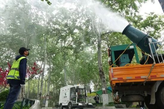 今年は北京市全域で、楊絮と柳絮の飛散ピーク期間中、エリアや時間帯を絞って、水やミストを噴射し、地面に落ちた綿毛を水で流したり、回収・清掃したりするなど、さまざまな重点措置が講じられる。例えば、毎朝通勤ラッシュ時間帯になる前に、前日に飛散して地面に落ちた綿毛を湿らせた上で回収・清掃する。また、夕方のラッシュ時間帯になる前にも綿毛を湿らせた上で回収・清掃し、綿毛が市民の外出に与える影響を抑える。
