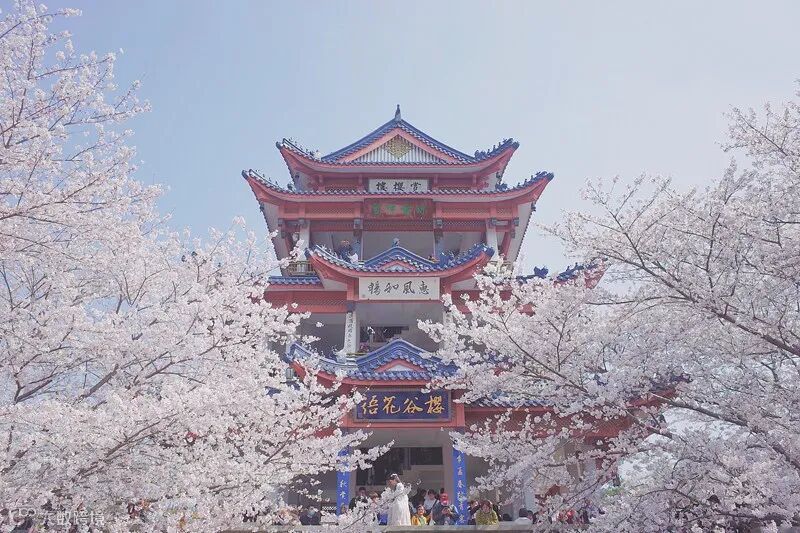 満開を迎えた鼋頭渚景勝地の桜(撮影・袁蒙)。
