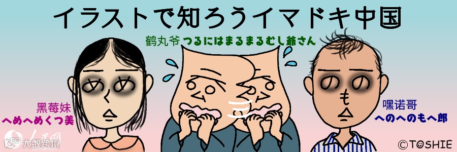 人民網ではもっと身近なスタイルで今どきの中国を読者の皆さんに知ってもらうため、「つるにはまるまるむし爺さん」と「へのへのもへ郎」、「へめへめくつ美」の3人が流行語やカルチャー、時事問題など幅広いジャンルにおける「イマドキ」を紹介。中国ってこんな国なんだ!と興味を抱き、理解を深めるきっかけにしてみてください。