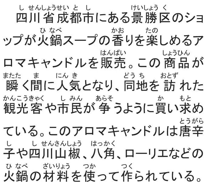 火鍋スープの香りを楽しめるアロマキャンドル(写真著作権は東方ICが所有のため転載禁止)。
