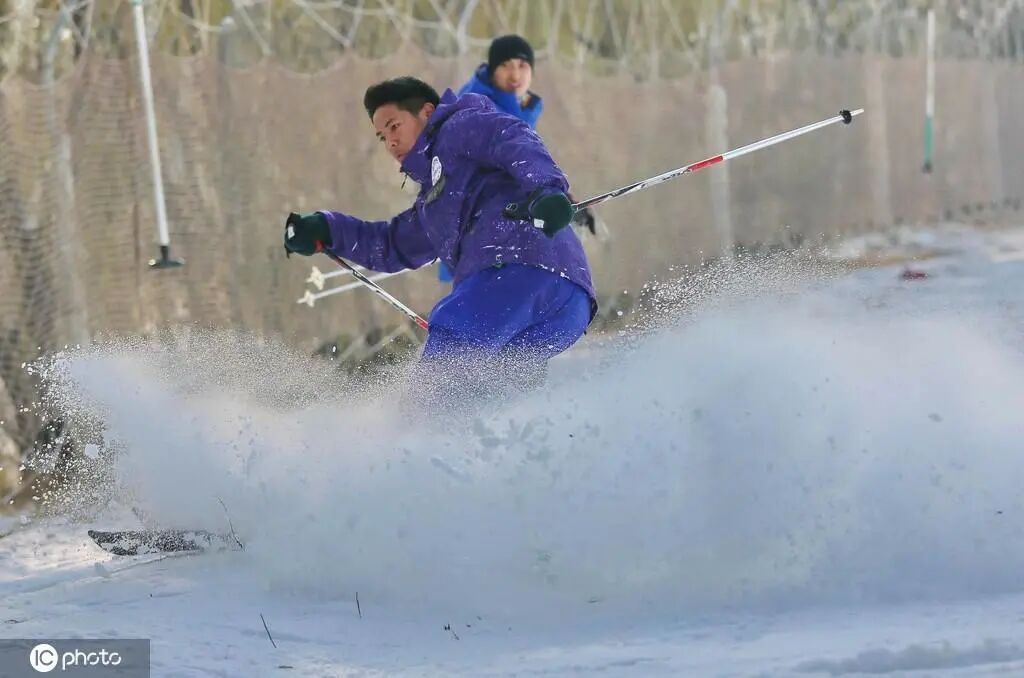 河北省秦皇島市海港区紫雲山スキー場でスキーを楽しむスキーヤー(写真著作権は東方ICが所有のため転載禁止)。