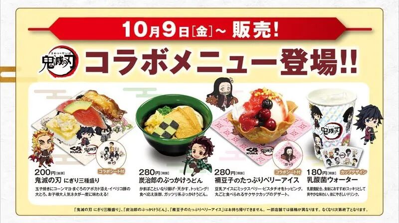 KURA寿司《鬼灭之刃》系列商品。(图片来源:KURA寿司官网)