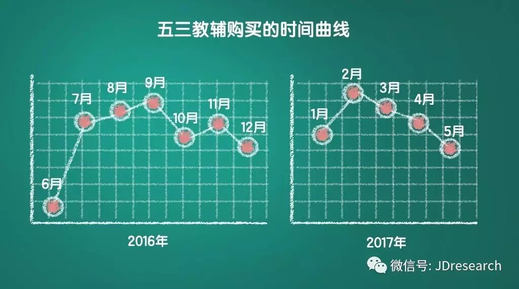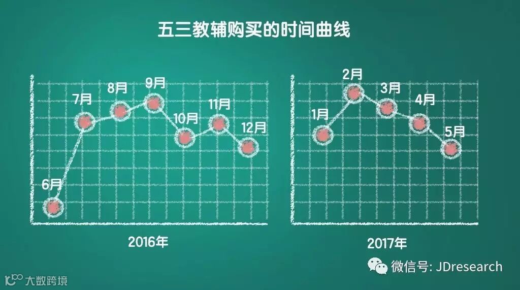 以著名的《五年高考三年模拟》(简称五三)为例,几个购买高峰分别发生在16年8月、9月和17年2月,就是暑假寒假前后。但令人好奇的是,居然还有20%的五三是在高考前两个月内卖出的…这时才买书,真的管用吗?