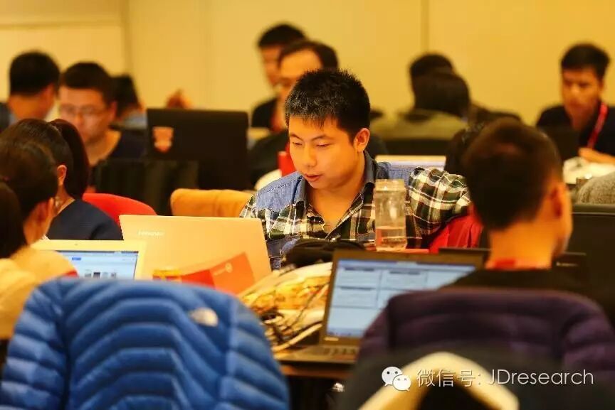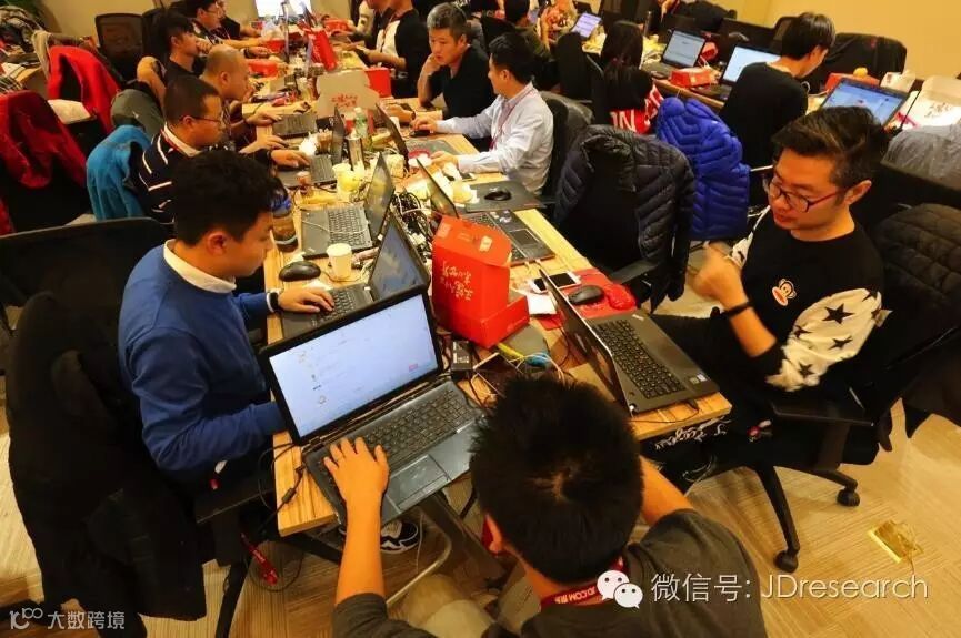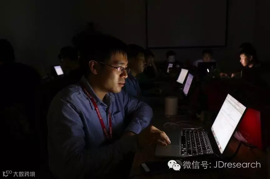 走到大数据部门所在的会议室,里面的环境是紧张却又让人踏实的,帅气的技术小哥们各个手拿电脑,冷静的盯着电脑屏幕,只是偶尔与旁边的邻座细语几声,我们向京东搜索研发部负责人王超招招手,他放轻脚步,向我们跑来。
