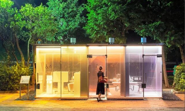 最近,在东京·涩谷的公园内出现了一座“透明厕所”。其实,它是经过特殊设计建造而成的。如果里面没有人上锁的话四面的墙壁呈透明状,从外向里看一览无余。一旦有人进去,并在里面上锁,从外面看则什么也看不到。