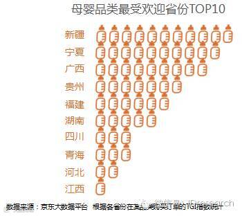 母婴:用户最看重质量、品牌、实物与推广的相符程度,母婴品类是品牌辨识度最明显的品类,在各级城市的品质关注度高于平均水平。母婴用品,进口奶粉、纸尿裤销量占比较高。