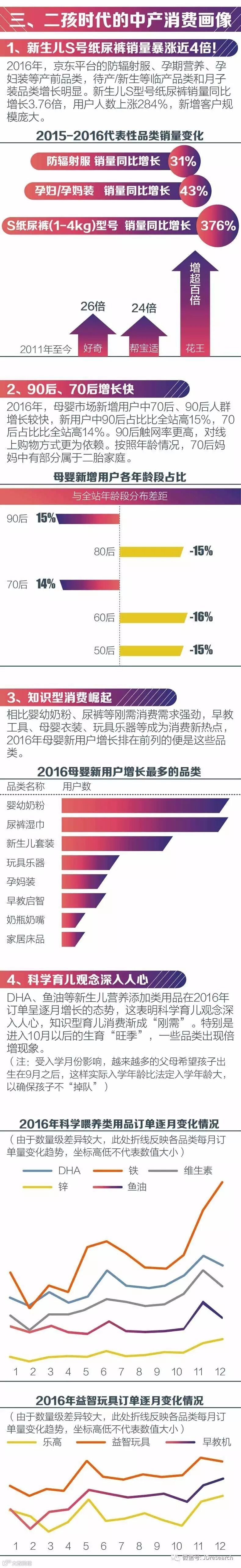 4月10日,京东联合21世纪经济研究院发布《2017中国母婴线上消费趋势报告》,以2016年母婴品类销售数据,结合对近1000名母婴商品用户进行的调研分析,以全面二孩和中产家庭崛起带来的消费升级为切入点,追踪全面二孩政策实施后城市家庭母婴消费轨迹,呈现“二孩时代”的中国母婴线上消费全景地图。