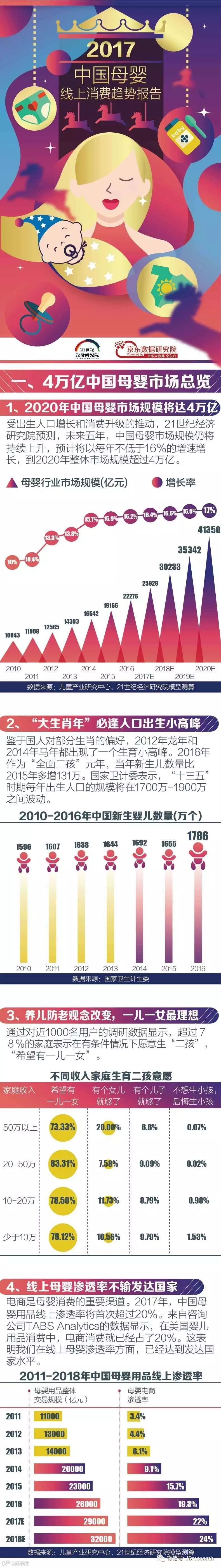 2017年1月1日,全面二孩政策实施整一年。在人口红利预期、国民消费升级双重作用下,线上母婴市场高速增长。人们的生育观念、线上母婴市场消费趋势、用户画像等也呈现出新特点。