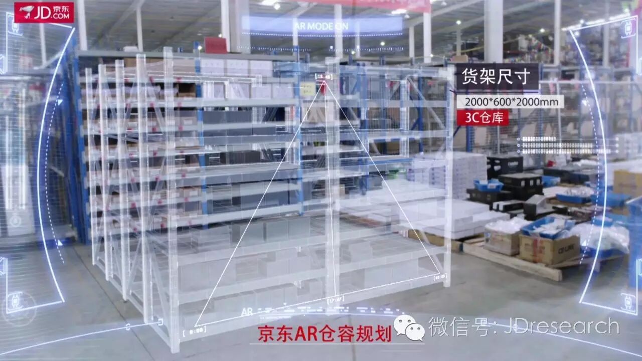 ▲京东的AR仓容规划系统,能够使仓储人员通过AR、VR设备用最直观的方式快速进行仓容规划,包括仓储面积,货架尺寸一目了然,而系统能够给出最佳的货物空间摆放位置,提升物流效率。
