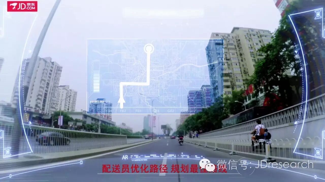 ▲而配送员通过AR能够获取最佳的路径优化,得出最佳的运送路线,进一步提升京东的配送速度。