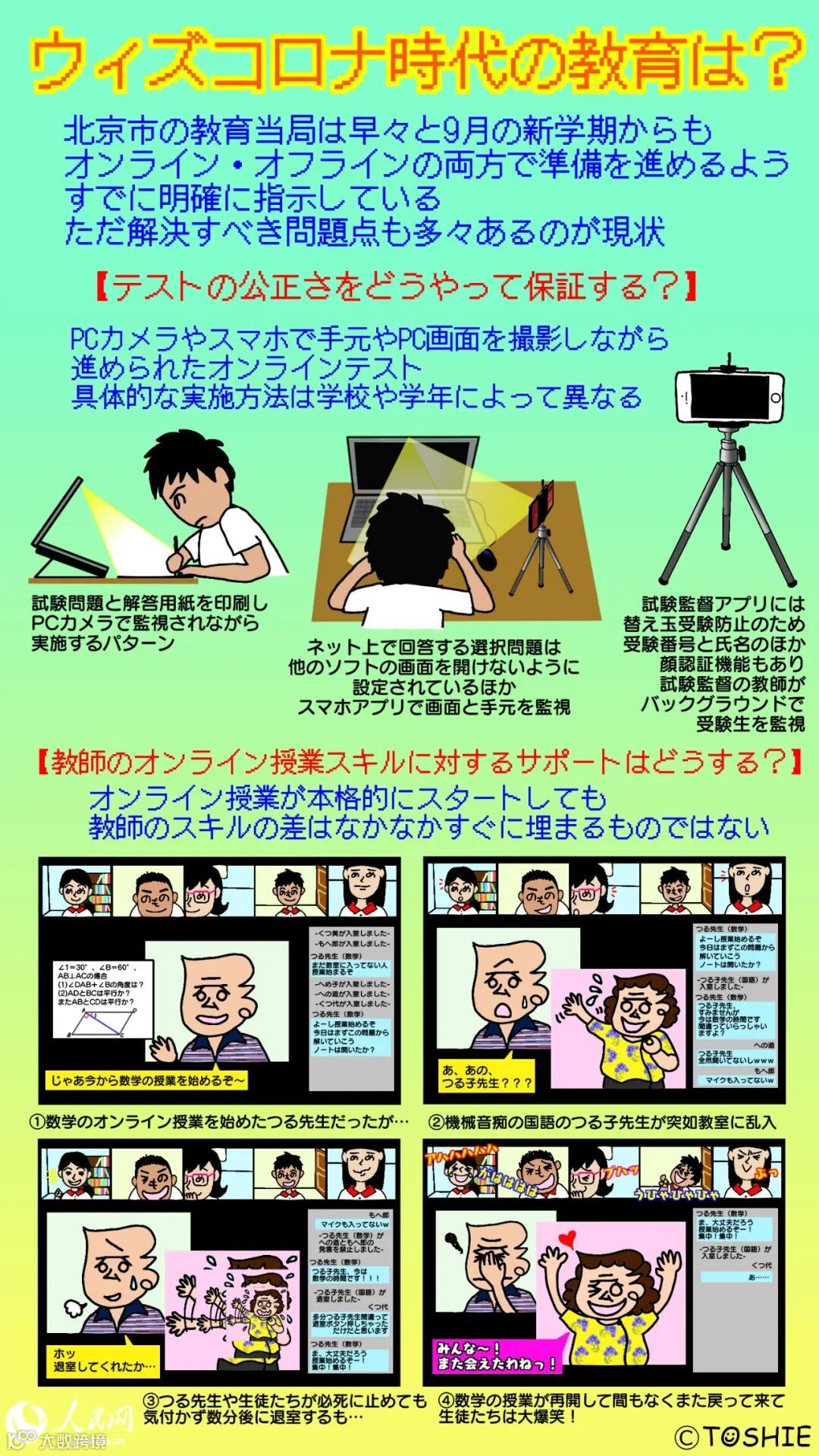 6月中旬に北京市で感染が再確認され、世界各地でもまだまだ深刻な感染状況が続く中、北京市の教育当局は早々と9月の新学期からもオンライン・オフラインの両方で準備を進めるようすでに明確に指示している。この約半年でオンライン教育の体制は整いつつあるものの、その優れた点だけでなく、欠点も見えてきたと言ってもいいだろう。体育の授業をどうするのか?テストの公正さをどのように保証するのか?そしてこれまではあくまで補助的ツールとして使用されることが多かったパソコンソフトやスマホアプリといったツールを使いこなさねばならなくなっている教師たちのサポート、さらには各家庭におけるハードウェアやネットワーク環境の統一化など、解決すべき問題点も多々ある。