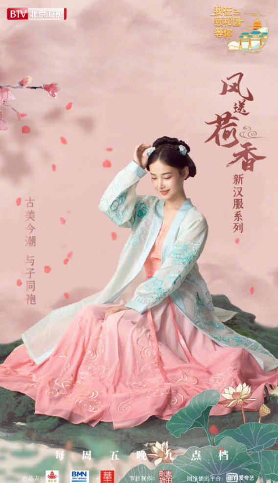 「漢服ブーム」が数年前から高まり続けている。漢服は今では、多くの人が街に出る際に欠かせない「国潮(中国伝統の要素を取り入れたおしゃれなトレンド)」アイテムとなり、漢服の消費も一部の限られた層から次第に一般大衆にも注目されるようになった。文化系バラエティ番組「我在頤和園等你(頤和園で待っています)」において、張国立(ジャン・グオリー)、王鶴棣(ワン・ホーディ)、白百何(バイ・バイホー)、李治廷(アーリフ・リー)らが、頤和園内にある蘇州街で漢服店の開店に見事成功しただけではなく、新たな漢服シリーズ「風送荷香」が発表され、漢服愛好者を大いに驚喜させている。