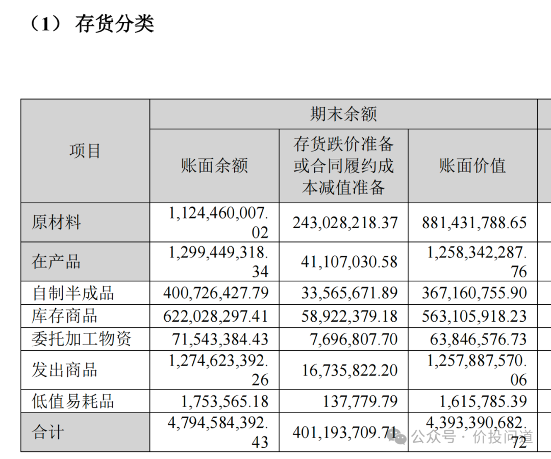 我们还是看看存货的构成。原材料账面余额11.2亿,但是,减去存货跌价准备之后,账面价值只剩下8.8亿。也就是说预计存货跌价超过20%。按照账面价值来算,主要的是原材料占了20%,在产品占28.6 %,发出产品占28.6 %。还算比较平衡。但是由于存货属性的问题,还是要注意减值风险。