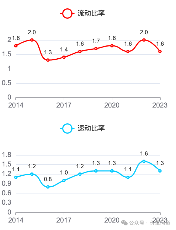 流动比率多数年份在2之下,不太好,不过速动比率大多数年份在1之上,偿债能力还可以。