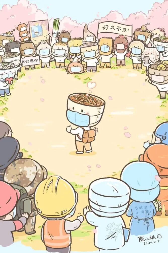 「陳小桃momo」さんは今年1月末、見る人の心をほっこりさせる武漢を応援するイラストを描いて話題を集めた。そのイラストとは新型コロナウイルスの感染が深刻だった武漢にエールをおくるイラストで、武漢名物グルメの「熱乾麺」を天津煎餅果子(中国式クレープ)や山東のネギ、陝西の肉夾饃(中国式ハンバーガー)といった中国各地を代表するグルメが応援するという内容だった。