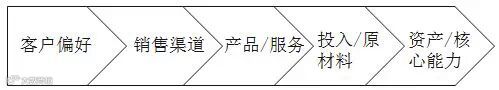 上面两个序列的差别反映了不同的思考方式。常规的方法是以市场份额为中心的,而创新者的方法是以客户为中心的。