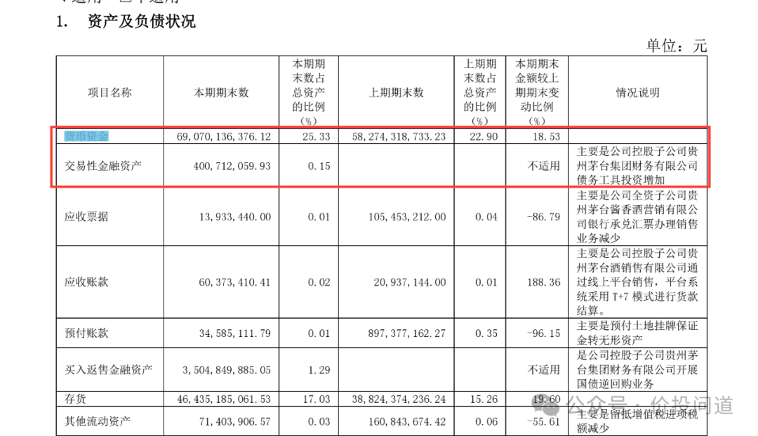 我们看一下茅台的主业专注度,投资类资产占总资产的比率是多少。