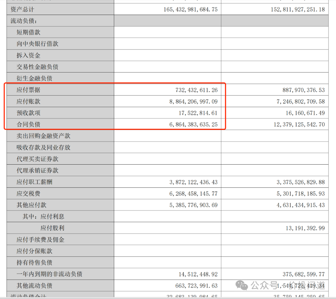 应付票据7.3亿+应付账款88.6亿+预收款项0.2亿+合同负债68.6亿,减去,应收票据0+应收账款0.4亿+应收款项融资140.9亿+预付款项1.7亿+合同资产0,等于是164.7亿减去143亿,最终得到21.7亿。五粮液在上下游面前的话语权,和茅台相比,还是差很多。