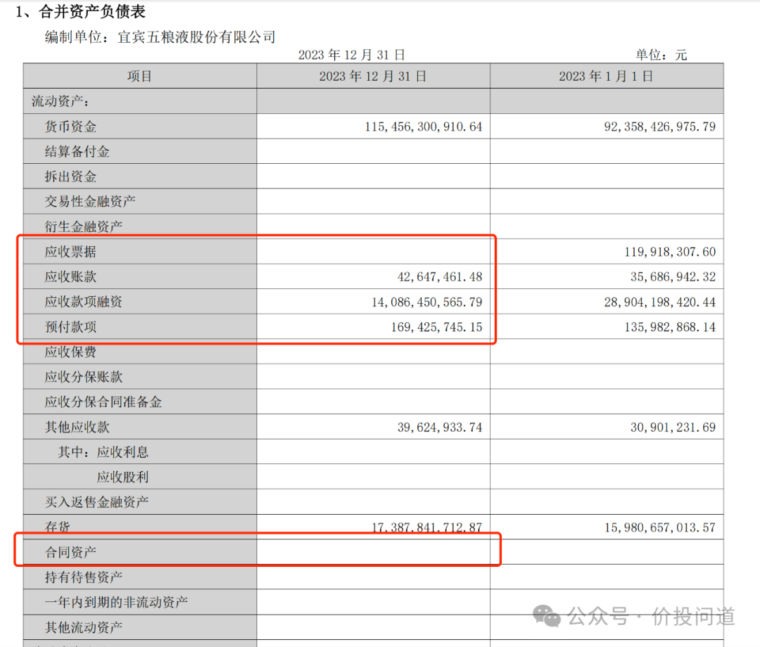 再看一下五粮液“应收账款”和“合同资产”占资产比率。