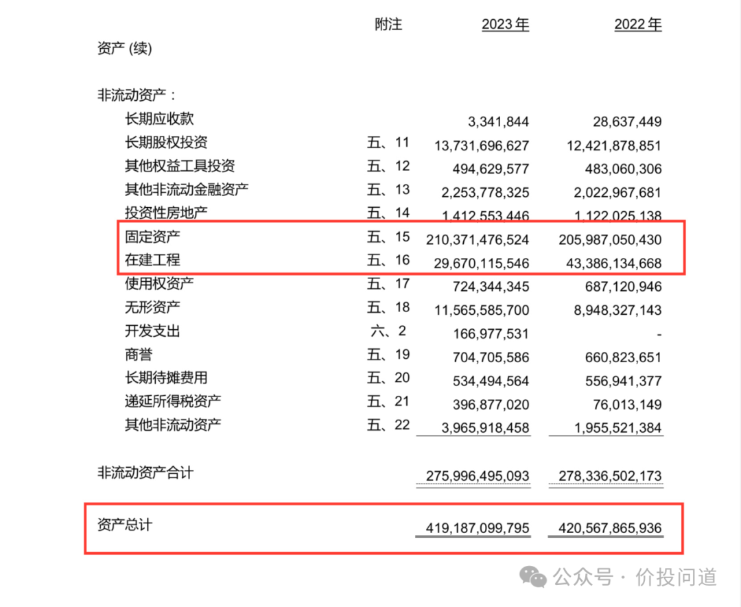 2023年固定资产2103亿+在建工程296亿,除以总资产4191亿,等于57%,已经远超过40%。京东方A所属的消费电子行业,技术更新快,投入巨大,有些设备还没折旧完,技术就已经被淘汰了,妥妥的重资产行业。
