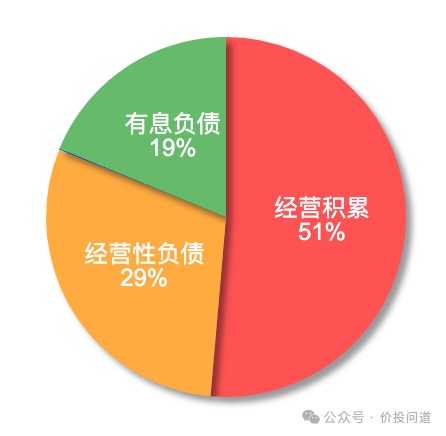 第六部分,资产结构。资产来源构成,经营积累占了50.6 %,经营性负债29.3 %,股东入资0.1 %,有息负债18.5 %。经营积累占了大头,有息负债不算太高。还可以。