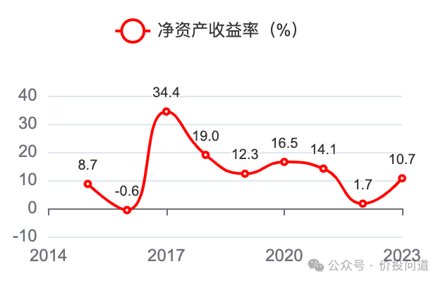净资产收益率起伏很大,2023年10.7 %,不算好。