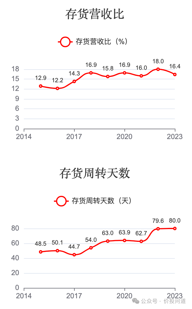 原材料占了24.6 %,制成品占了58.2 %,剩下的在制品、备品备件和其他占比就很少了。这个存货结构不太好。一般来说,好的存货结构,应该是原材料的占比大,制成品占比小。原材料库存占比大,说明生产需求比较旺盛,为此备的原材料多;产品畅销,所以制成品库存少。反之,制成品库存占比大,说明产品已经生产出来了,但销售并不是很顺畅,所以积压了一些库存。尤其是考虑到小米的存货属性,智能手机、智能家电、智能汽车这些产品,随着时间的推移都会越来越便宜,所以库存跌价的问题不容忽视。