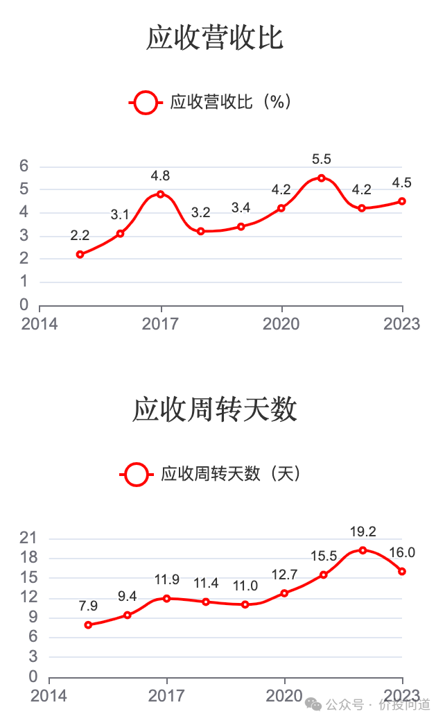 应收占营收比4.5 %,这个占比很低,挺好。应收周转天数16天,少于30天,也比较快。应收风险不大。