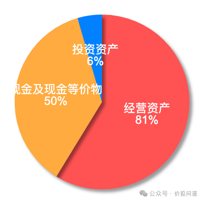 资产盈利结构,经营资产占比80.6 %,现金及现金等价物50.4 %,投资资产6.2 %。现金及现金等价物比例超过25%很多,不错,投资资产占比也不高。资产结构还是很不错的。