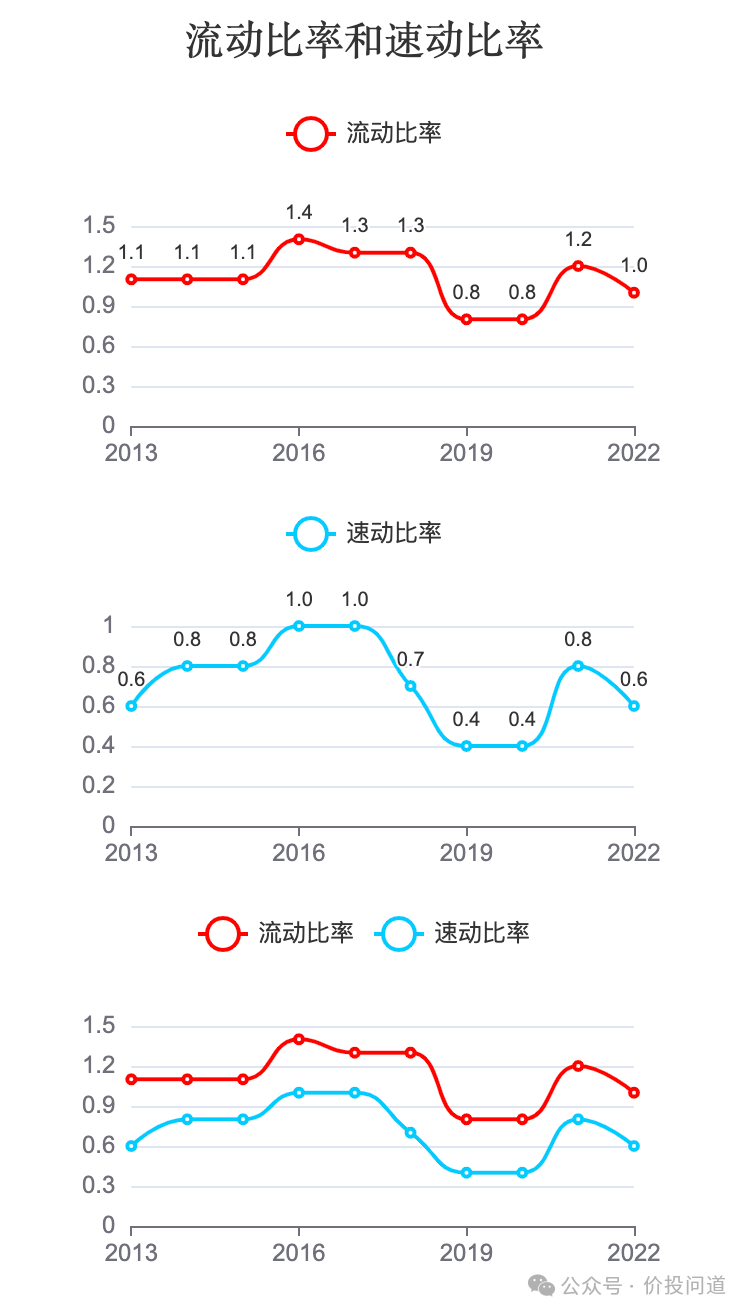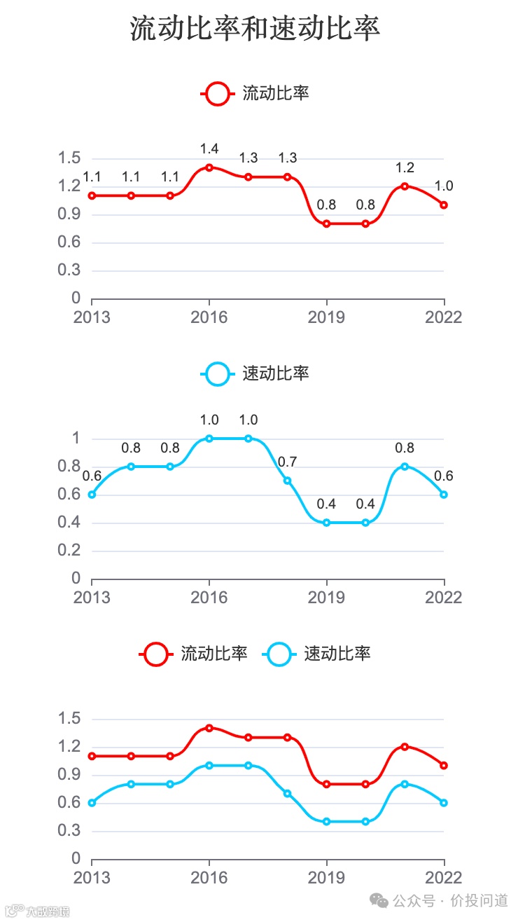 速动比率在0.4-1之间波动,这个值小于1,属于偏低了一点,不能说优秀,但也还算正常。