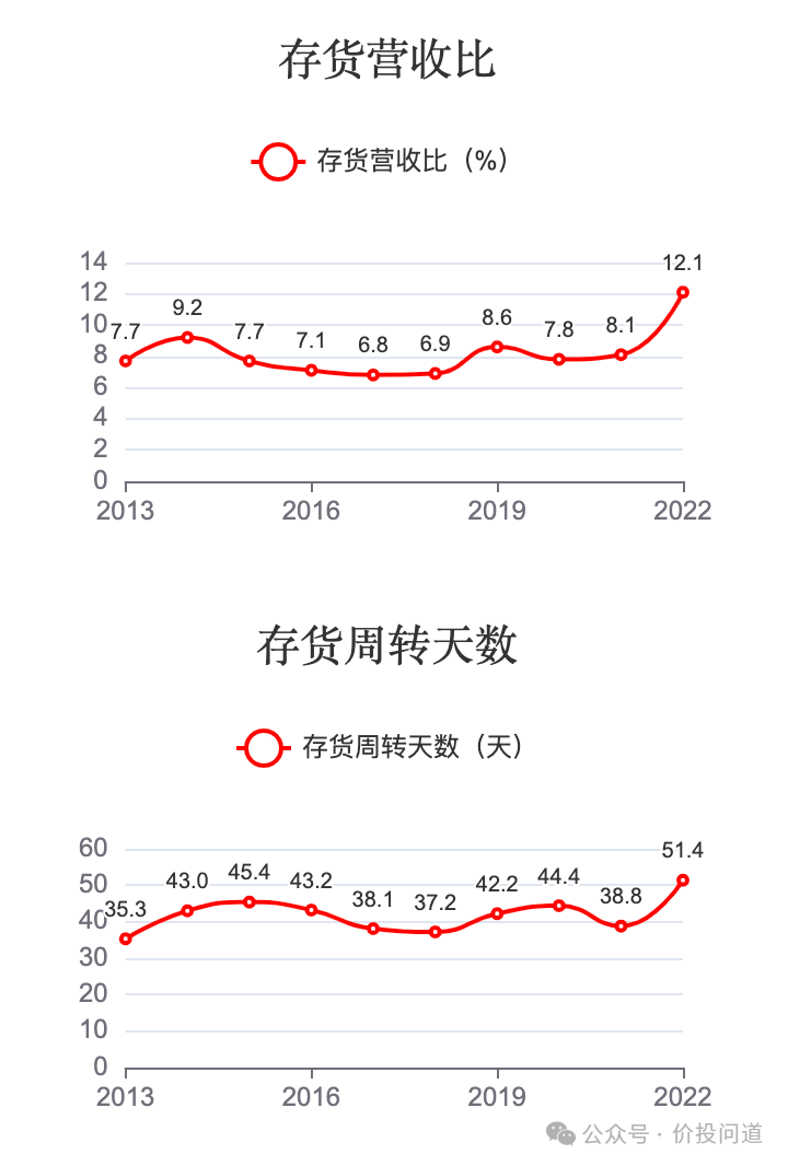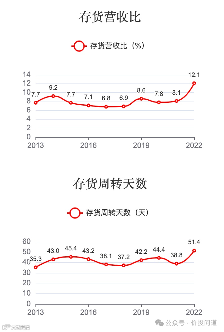 存货占营收比在7%-12%波动,属于正常值,2022年12%比光明的14.9%略低一点。