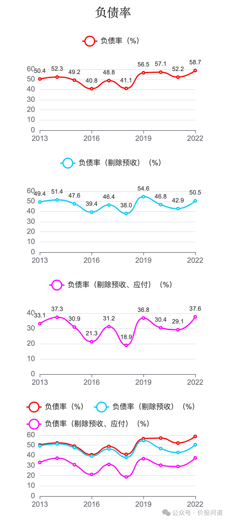 剔除预收、应付之后的负债率,有所下降,2022年37 %,属于合理范围。