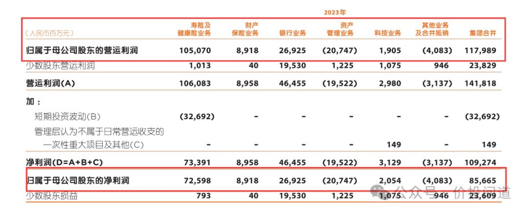 2023年平安的资产管理业绩,除了在集团分业务营运利润表中披露了资产管理规模7万亿,资产管理业务合计亏损207.47亿之外,在年报的资产管理业务部分就只提了规模、市占率等数据,其他与营收及利润相关的数据均未披露。可能管理层觉得7万亿的巨大规模,波动个207亿也在正常范围。没有具体披露数据这块就无法深入分析。