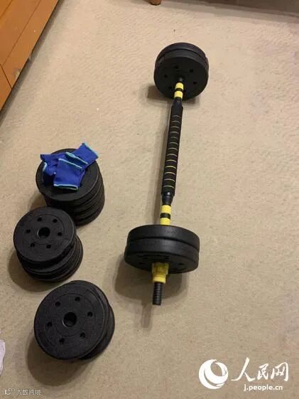ものすごく重いのに送料込み98元というお値打ち価格でゲットしたというバーベルセット(写真提供・荒木さん)。