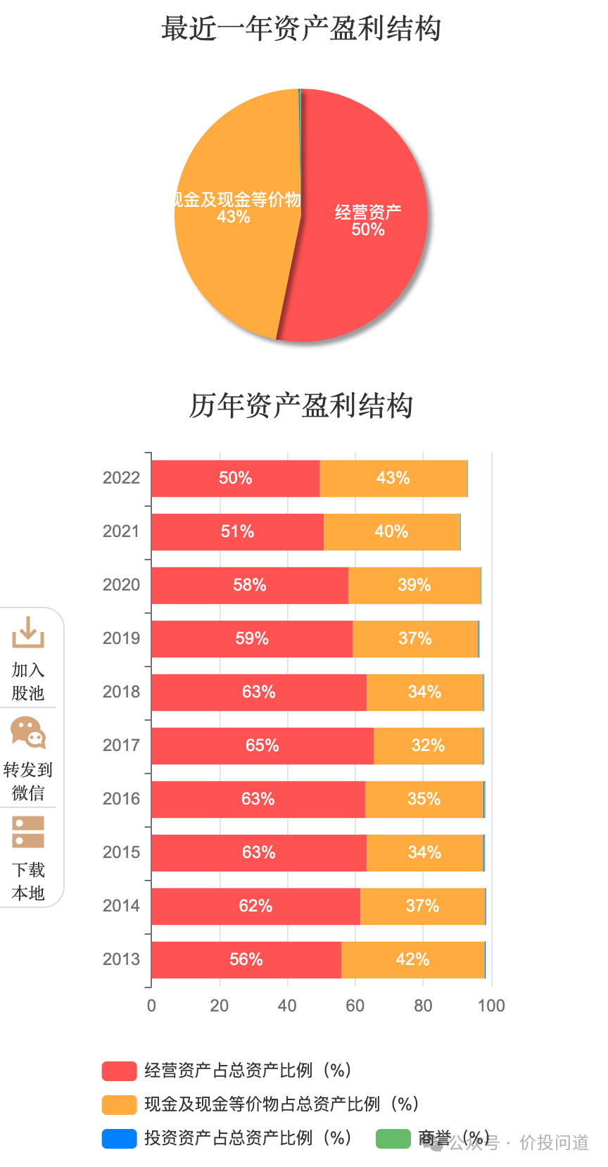 资产盈利结构很清晰,经营资产占50%,现金占45%,对外投资非常小,现金很充裕,妥妥的主业驱动型。