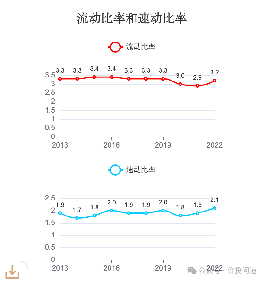 流动比率在3左右,速动比率在2左右,资产流动性也很健康。