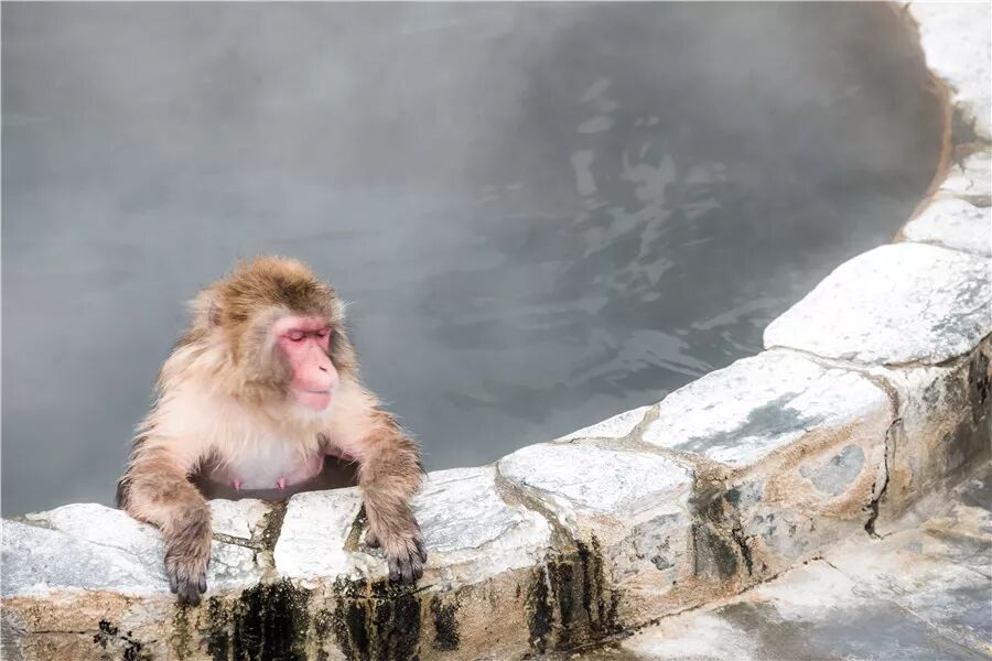 在函馆的热带植物园,猴子们都很享受下雪天的温泉,不被其他的猴子和人类打扰,独享这个暖和的时间。(作者:Parko-KENZO 。拍摄地点:函馆热带植物园)