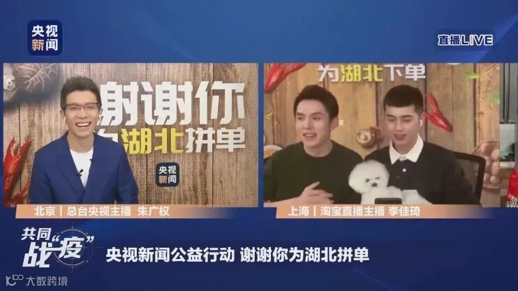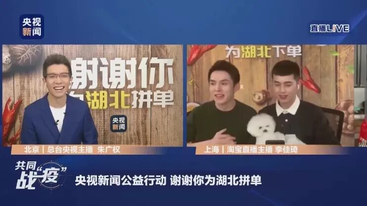 中国中央テレビ(CCTV)の司会者・朱広権さんは4月6日、中国で絶大な人気を誇るKOL(キーオピニオンリーダー)の李佳琦さんとコンビを組み、オンラインで繋げてライブ配信を行い、湖北省を支援するため、同省の特産品などを販売した。